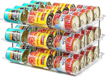 Can Organizer for Pantry, Stacking Can Storage Organizer Pantry, Automatic Rolling Can Rack for Fridge, 3Tire 3 Columns Can Holder for 36 Cans, Canned Goods Organizer