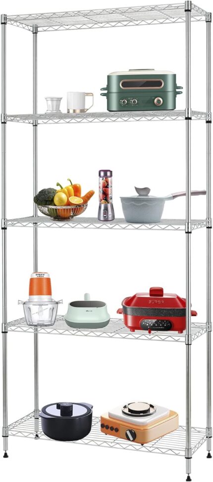FDW 14″ D×24″ W×60″ H Wire Shelving Unit Metal Commercial Shelf with 5 Tier Layer Rack Strong Steel for Restaurant Garage Pantry Kitchen Garage,Chrome