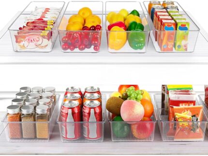 Set of 8 Clear Fridge Organizer Bins, Stackable Refrigerator Organizers and Storage for Fridge, Freezer, Pantry, BPA Free