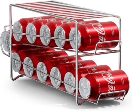 Sorbus Soda Can Rack Beverage Dispenser (1 Pack, Silver) – Holds 12 Standard 12oz Cans – Soda Can Organizer for Refrigerator, Pantry, or Countertop