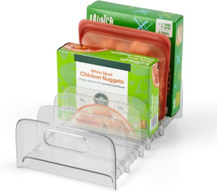 YouCopia FreezeUp Freezer Rack 12″ BPA-Free Fridge Organizer with Adjustable Dividers and Handles for Frozen Food Box and Meal Storage, Clear
