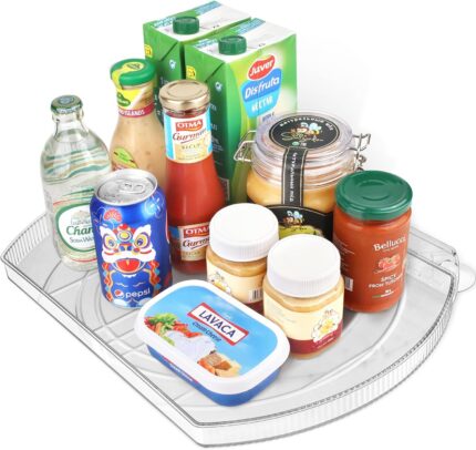 FIRJOY Lazy Susan Turntable for Refrigerator, Square Turntable Organizer for Fridge Cabinet, Pantry, Countertop | 16.5″ x 11.1″ (Rectangle 1 Pack – Clear)