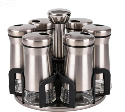 LCshuyao 360° Rotating Spice Rack,Spice Rack Organizer for Cabinet – Includes 6pcs Glass Spice Jars and Labels,Spice Storage, Cooking, Outdoor BBQ,(Spices Not Included) (Modern)
