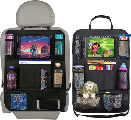 2 Pack Car Seat Organiser, Car Tidy Organiser Back Seat, Water Proof Oxford BackSeat Protector with 10″ Ipad Tablet Holder, 9 Pockets for Books, Bottles, Black