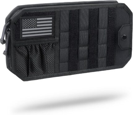WYNEX Molle Car Sun Visor Organizer, Original Design Car Accessories with Zipper Visor Storage Pouch & Glasses Clip, Semi-Rigid Molle Panel for Tactical Gears, Fits Most Vehicles, SUVs, Trucks
