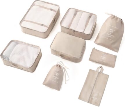 8 Pieces Mesh Packing Cubes for Travel, Luggage Packing Organizers Bags Set, Travel Essentials Suitcases Accessories with Laundry Bag, Storage Shoe Bag, Clothing Underwear Bag (Cream, 8 set)