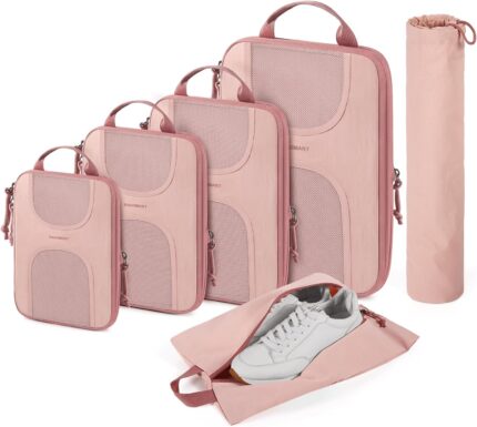 BAGSMART Compression Packing Cubes for Travel, Compressible Luggage Organizer for Cruise Ship, Lightweight Travel Essentials 6-Pack 1L+2M+2S+1Shoe Bag