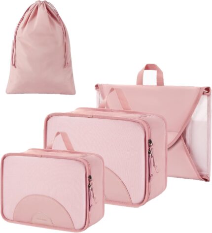 BAGSMART Garment Folder Packing Cubes for Travel, 4 Set Lightweight Travel Cubes for Wrinkle Free, Durable Suitcase Organizers Bag Set for Travel Essentials Baby Pink
