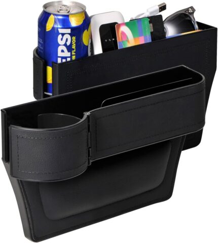 Car Seat Gap Filler Organizer Between Front seat car Organizer and Storage Box, Auto Premium PU Leather Console with Cup Holder, Car Pocket for Interior Essentials (for Passenger Side)