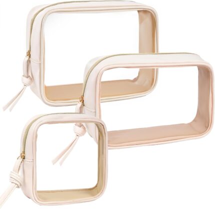 3Pcs Travel Clear Makeup Bag Set for Women, Transparent Toiletry Bag with Zipper Portable Makeup Pouch Organizer Waterproof Small Cosmetic Bag Compact Car Bag Organizer Car Accessories (White Set)