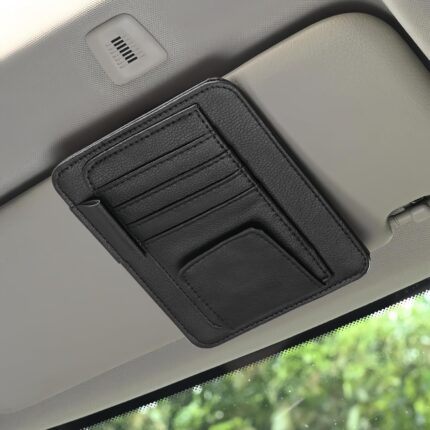 Auto Car Sun Visor Organizer, Multifunctional Auto Interior Accessories Storage Pocket Sun Visor Pouch for Card License Registration Document Pen Key Interior Accessories Pocket Organizer (Black)
