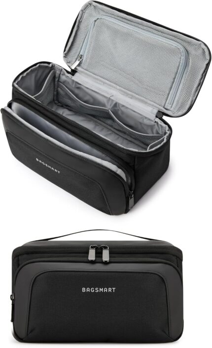 BAGSMART Toiletry Bag for Men, Wide Opening Travel Bag for Toiletries, Dopp Kit Water Resistant Shaving Hygiene Bag for Bathroom Shower, Toiletries Accessories,Travel Essentials-Black