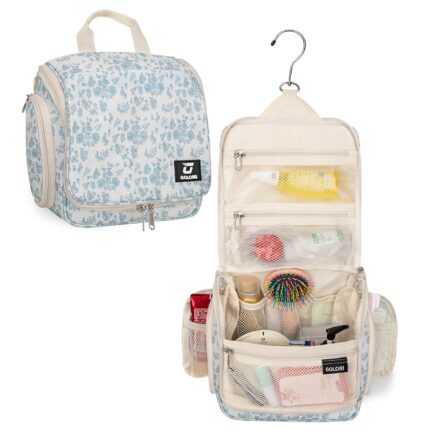 Goloni Hanging Toiletry Bag with Hook, Large Makeup Bag Travel Organizer, Water-Resistant Hanging Cosmetic Bag with 10 Compartments for Women & Men,Blue