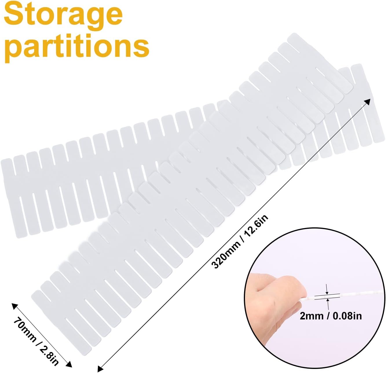 Material: plasticSize: 12.6in x 2.76in / 32 x 7cmColor: WhitePacking Includes:100 x drawer dividers