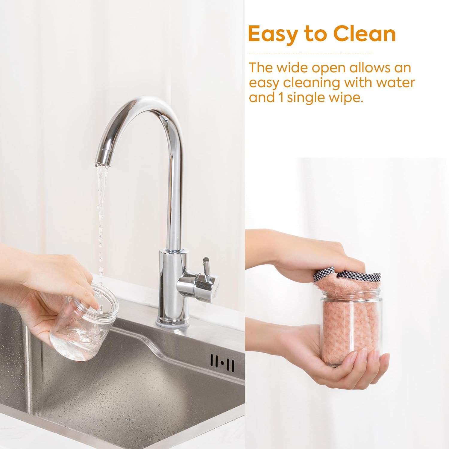 EASY TO CLEAN — The wide open allows you to clean the jars with your hand in it for a thorough cleaning.