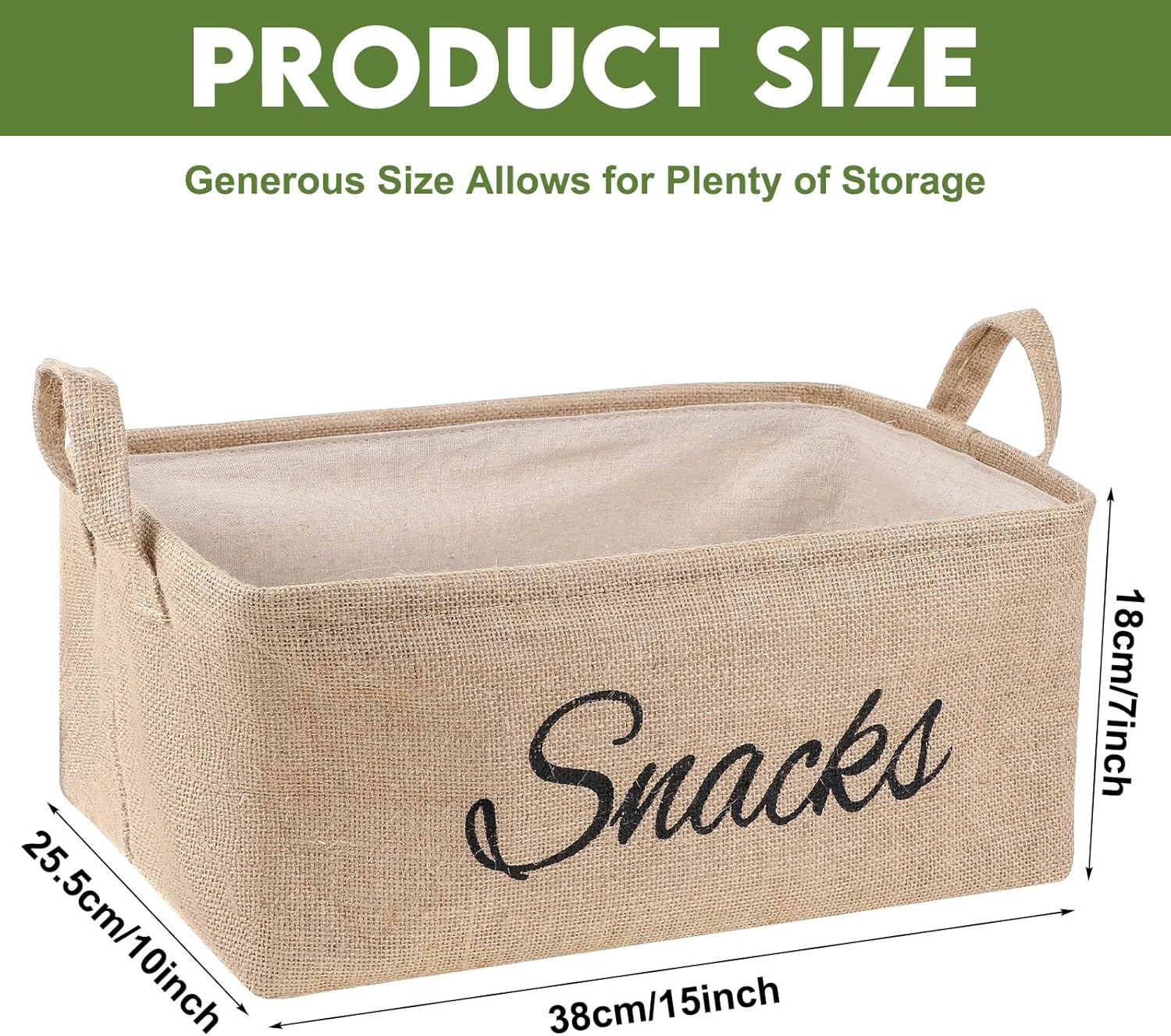 Snack Storage Bin Set: the sets include 1 burlap storage basket to organize snacks, store single serve chips, cookies, granola bars, and favorite treats in our large snack container helps save space in the pantry for other items