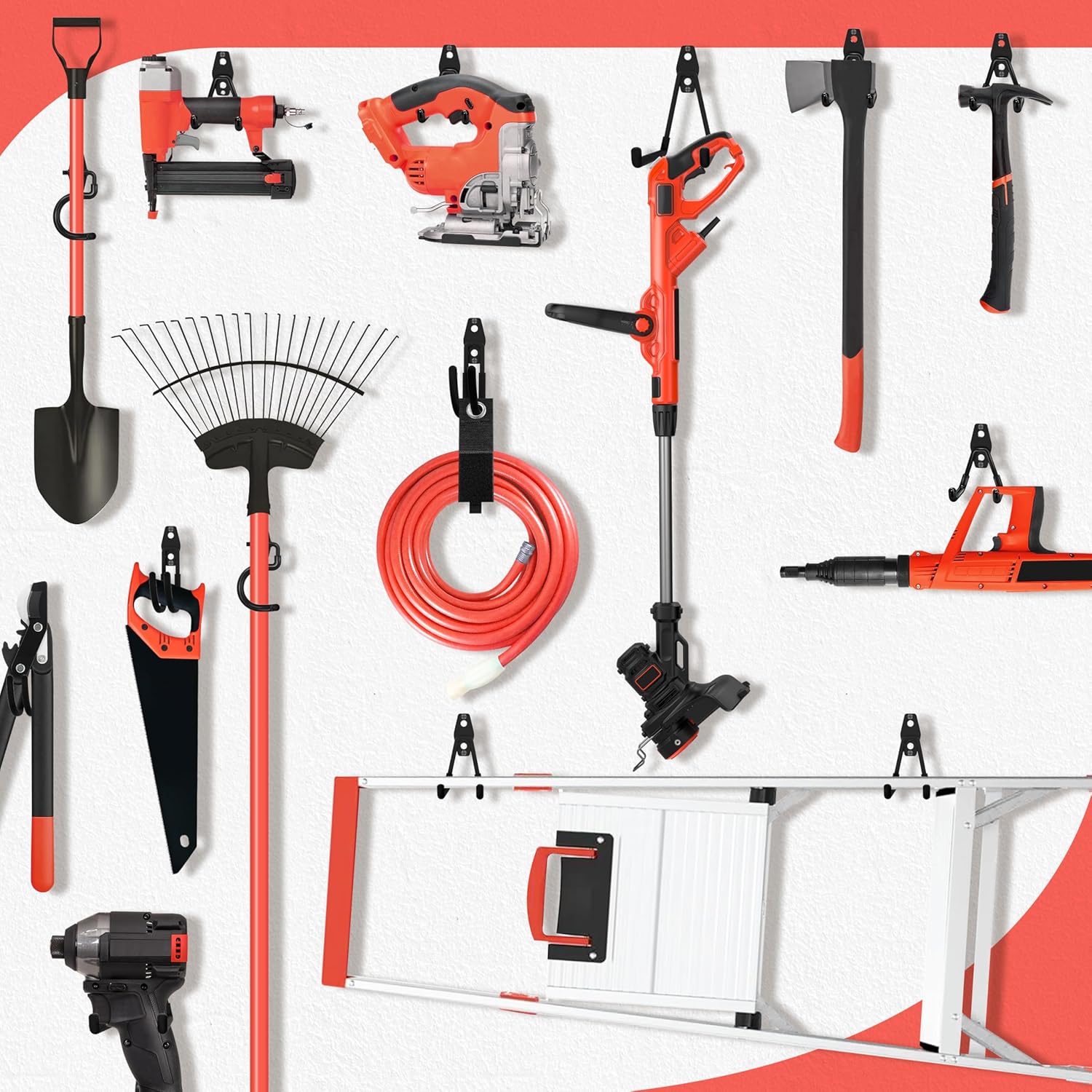 Easy Installation: Enjoy hassle-free setup with our utility hooks that come with two types of screws and anchors, making them compatible with drywall, wood, brick, or concrete walls. Transform your garage organization!