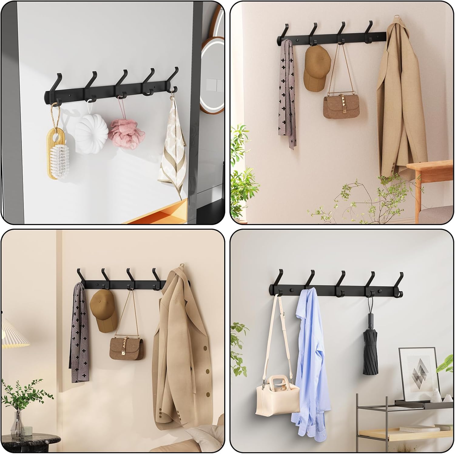 2 Pack Coat Rack Wall Mount,17.3 in Wall Hooks for Hanging, Coat Hanger Wall Mount Towel Rack Hat Rack for Wall with 10 Hooks for Entryway, Bedroom, Bathroom (Black)