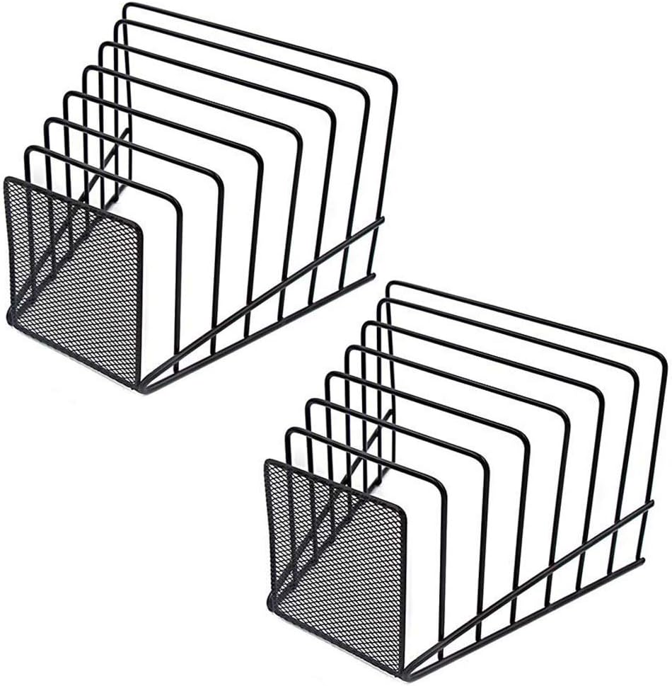 2 Pack Multi Step File Organizer Incline Desktop File Sorter Metal Wire Mesh Step File Letter Sorter, 7 Sections, Black