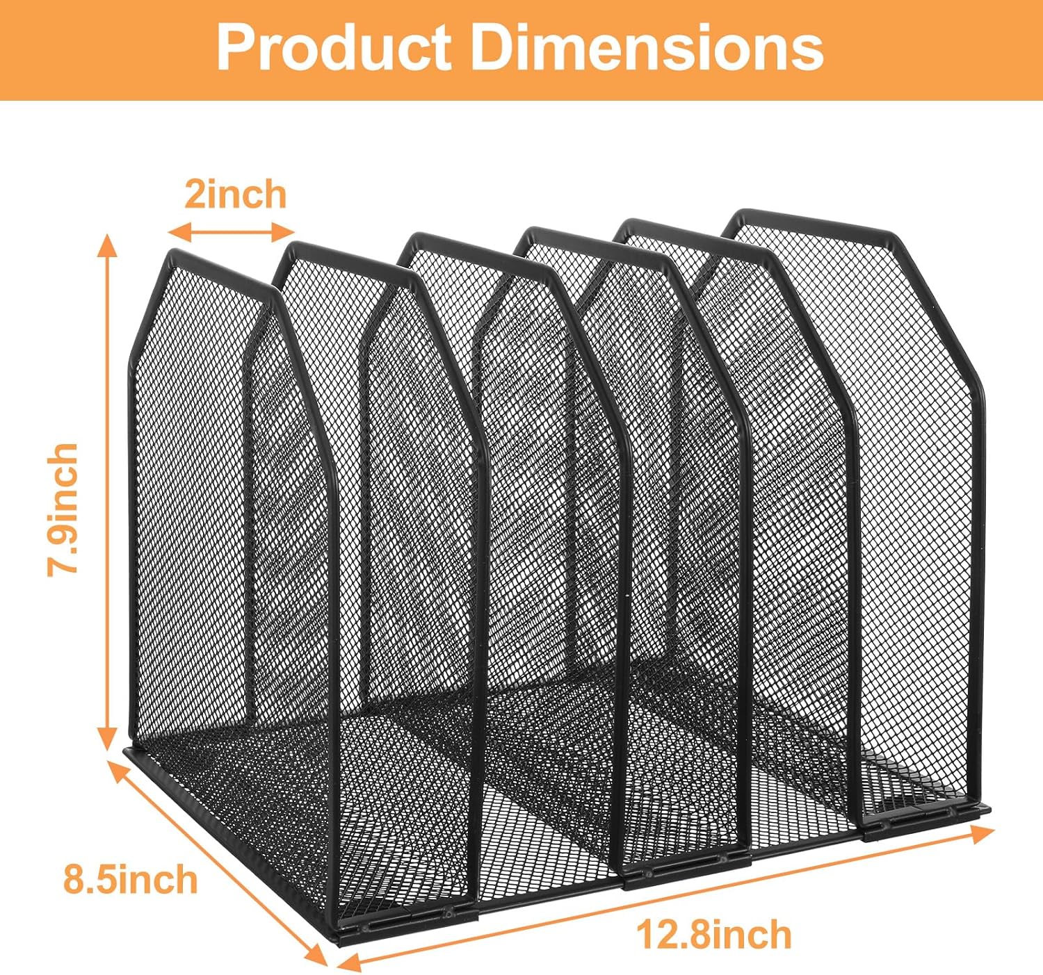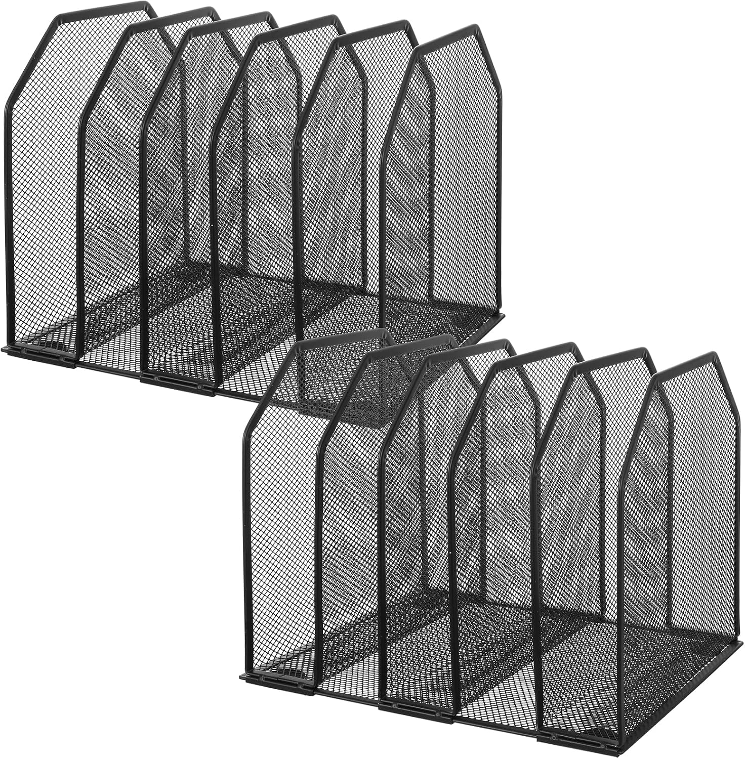 2 Pcs Vertical File Organizer for Desk – Metal Mesh Holder with 5 Compartments, File Folder Rack & Document Storage Stand – 9.3″ x 8.5″ x 7.9″