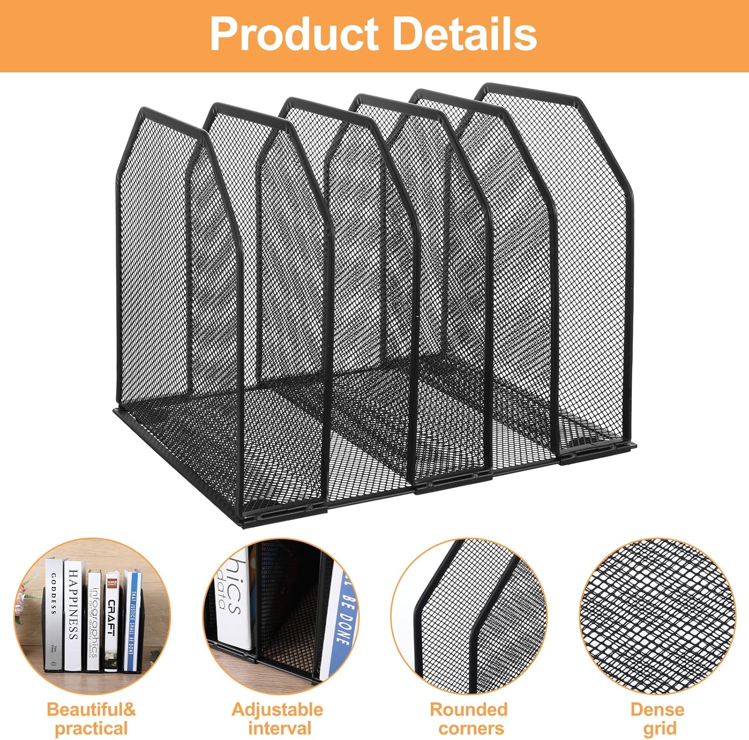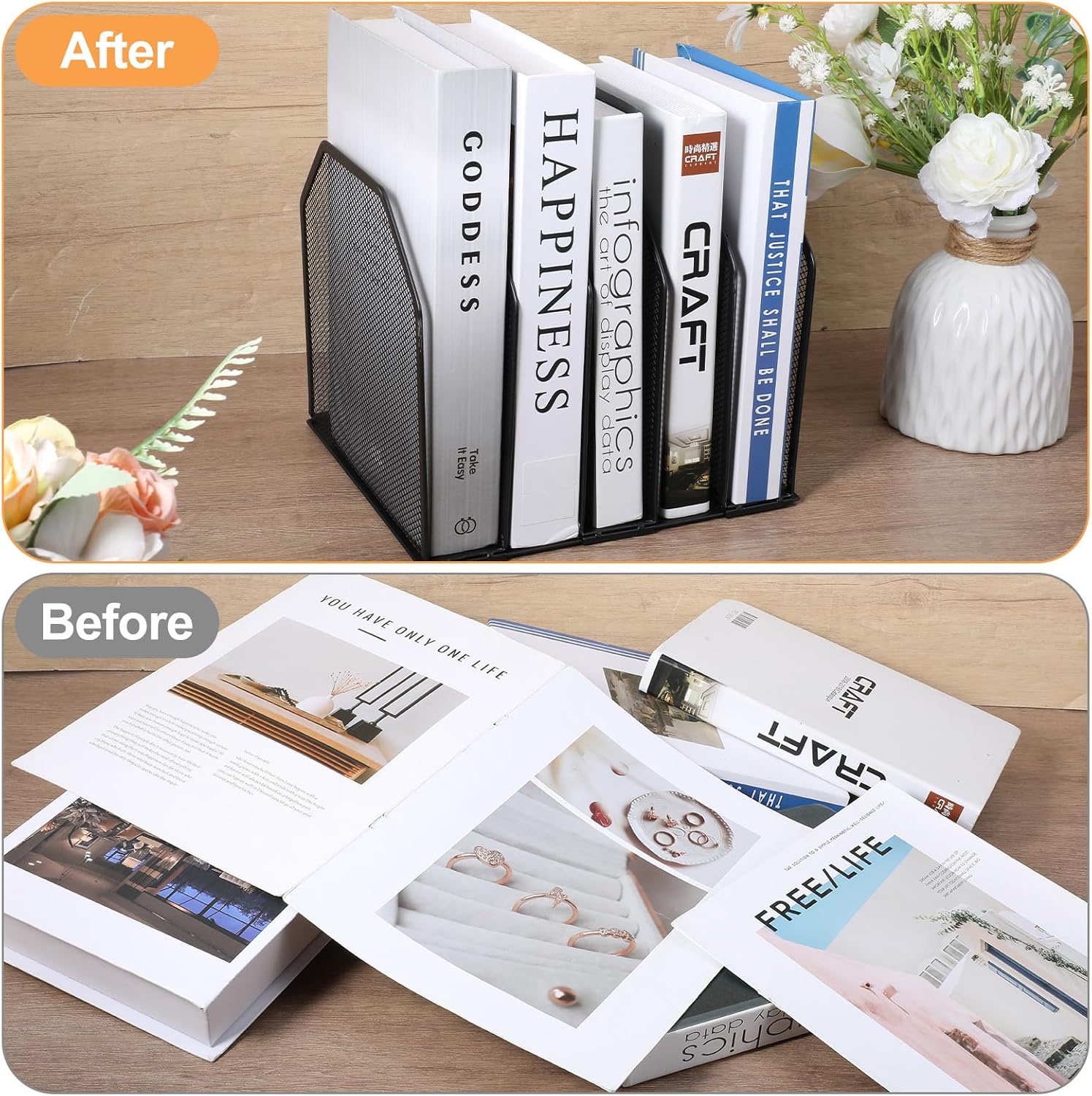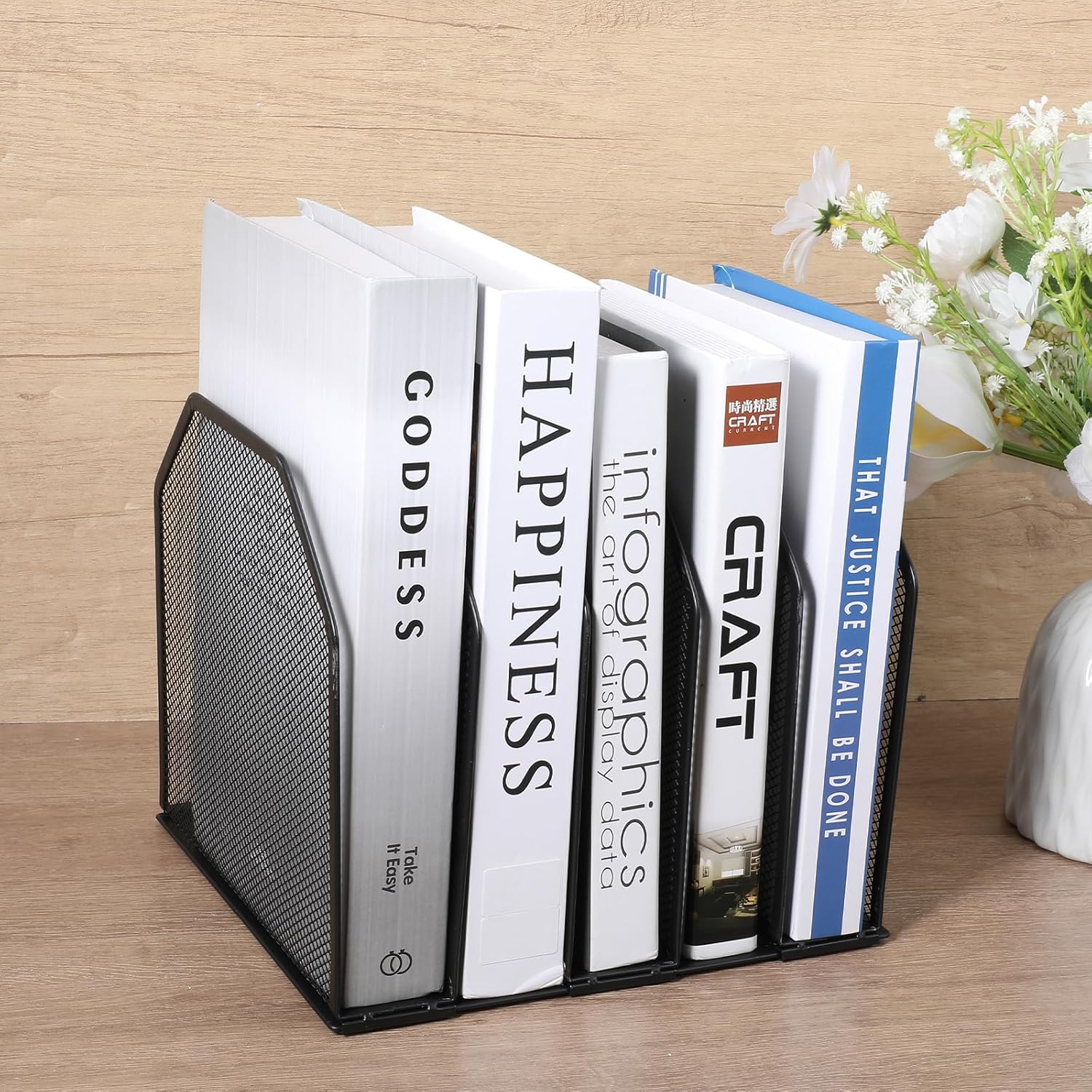 【Efficient File Organization】This vertical file organizer features 5 spacious compartments to categorize documents, folders, and magazines. Keep your workspace tidy and locate files instantly.