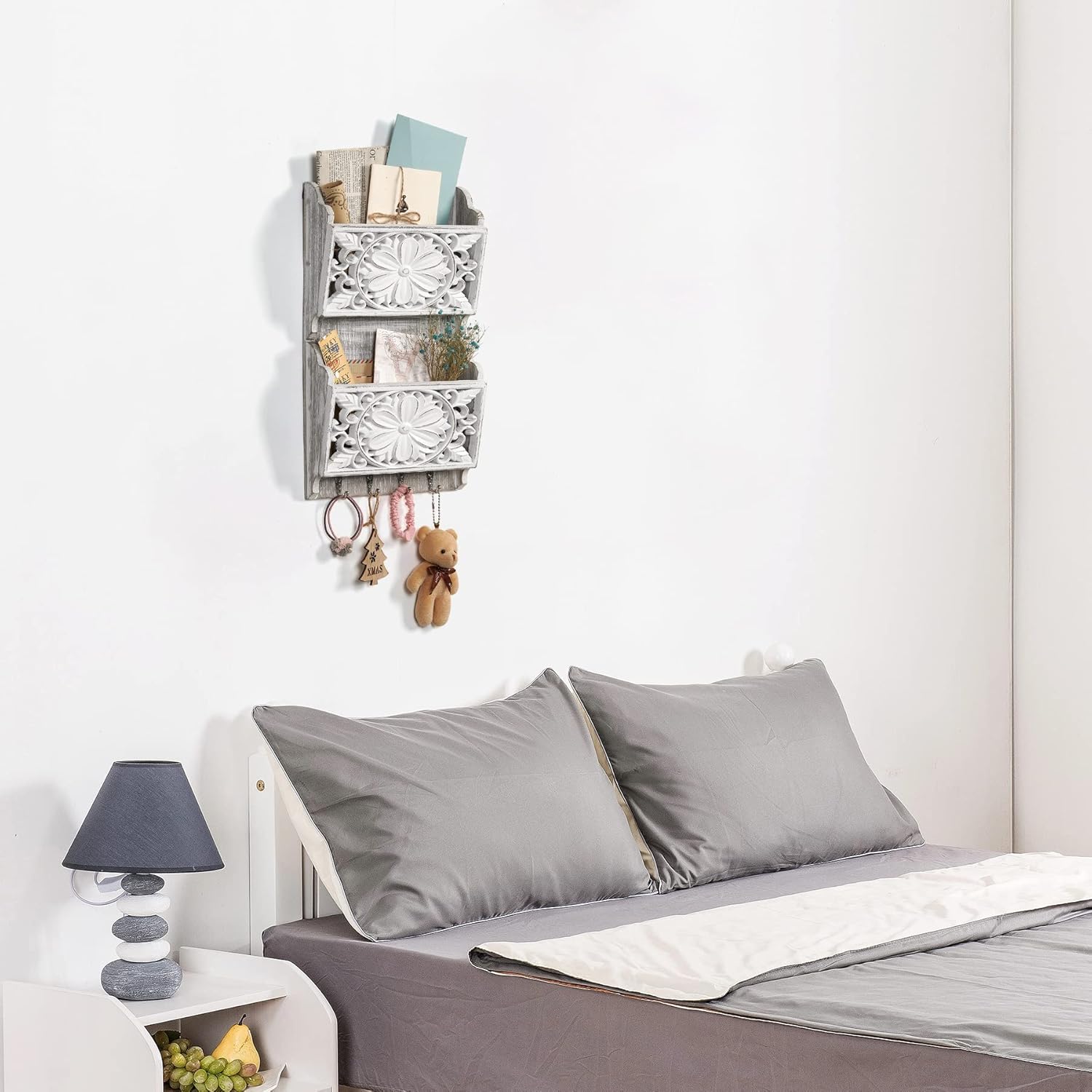 【MULTI-FUNCTIONAL STORAGE RACK】Designed in rustic white and with a unique vintage pattern, this organizer is the perfect wall decoration to hang in your office, home or classroom to keep your files, mail, documents, magazines, notebooks and keys organized and your space clean and orderly