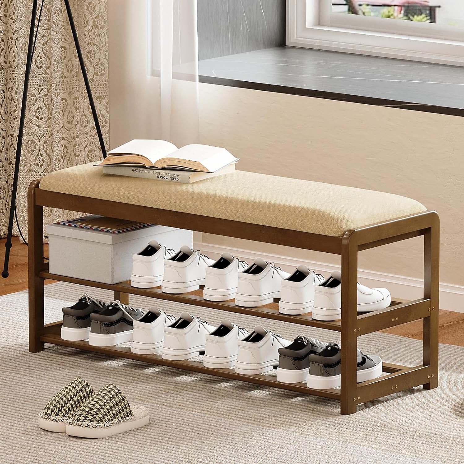 【Comfortable Seat Cushion】Soft, breathable linen cushion adds extra comfort when sitting down to remove or put on shoes—great for use near the front door or bedroom