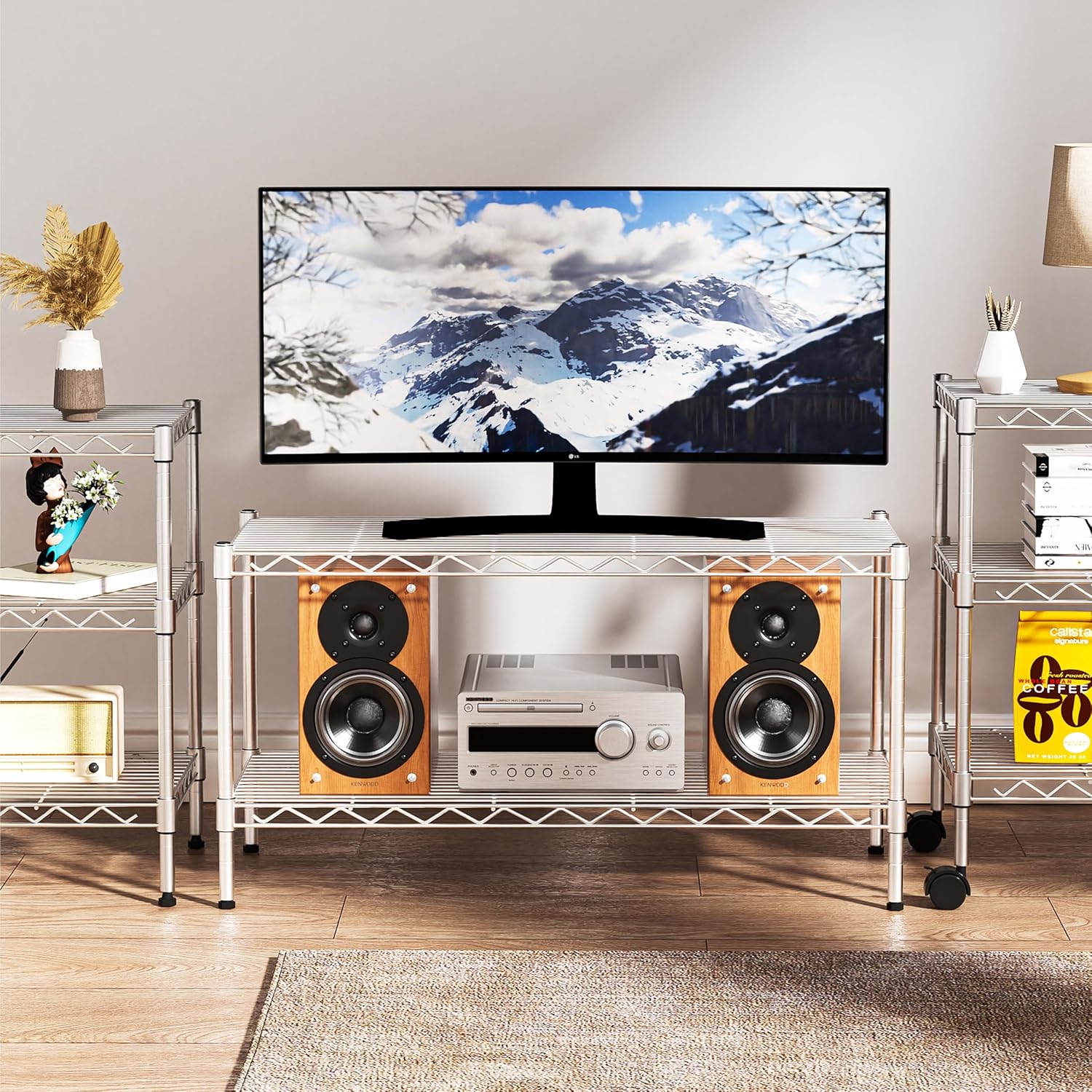 2-Tier Heavy Duty Shelving Unit,36″ Wx18 Dx19.5H,Wire Shelf Rack with Lockable Wheels,Height Adjustable Metal Storage Shelves Organizer for Living Room,Garage,Kitchen,Office,Laundry,Pantry