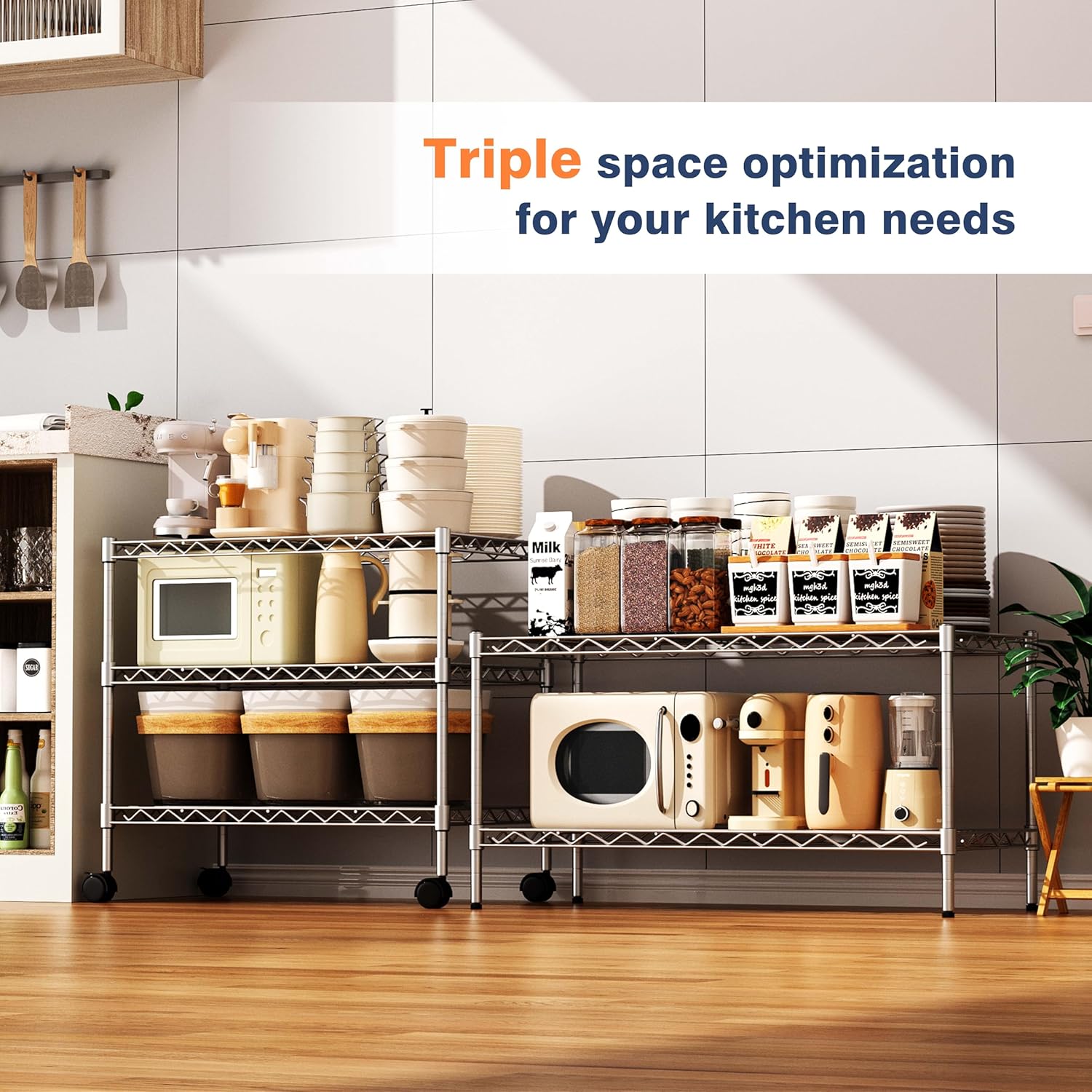 【Quick & Tools Free Installation】This three-tier storage shelf rack is incredibly easy to set up. You can have it assembled in less than 15 minutes without needing any tools—just unpack and go!