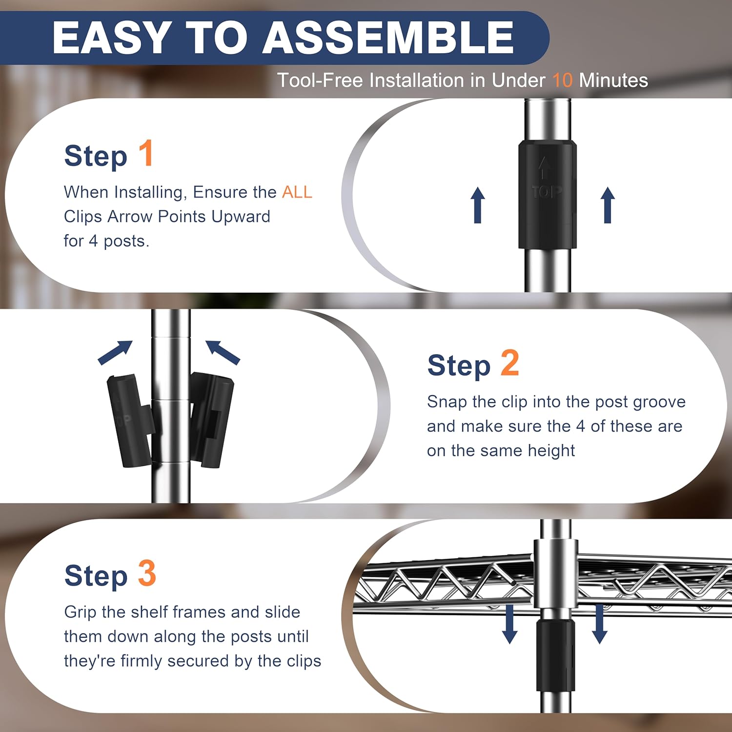 【Durable & Sturdy Construction】Made from high-quality steel and featuring a unique triangular mechanical design, this anti-rust wire shelving unit is tighter, stronger, and more durable than traditional racks, ensuring long-lasting performance.