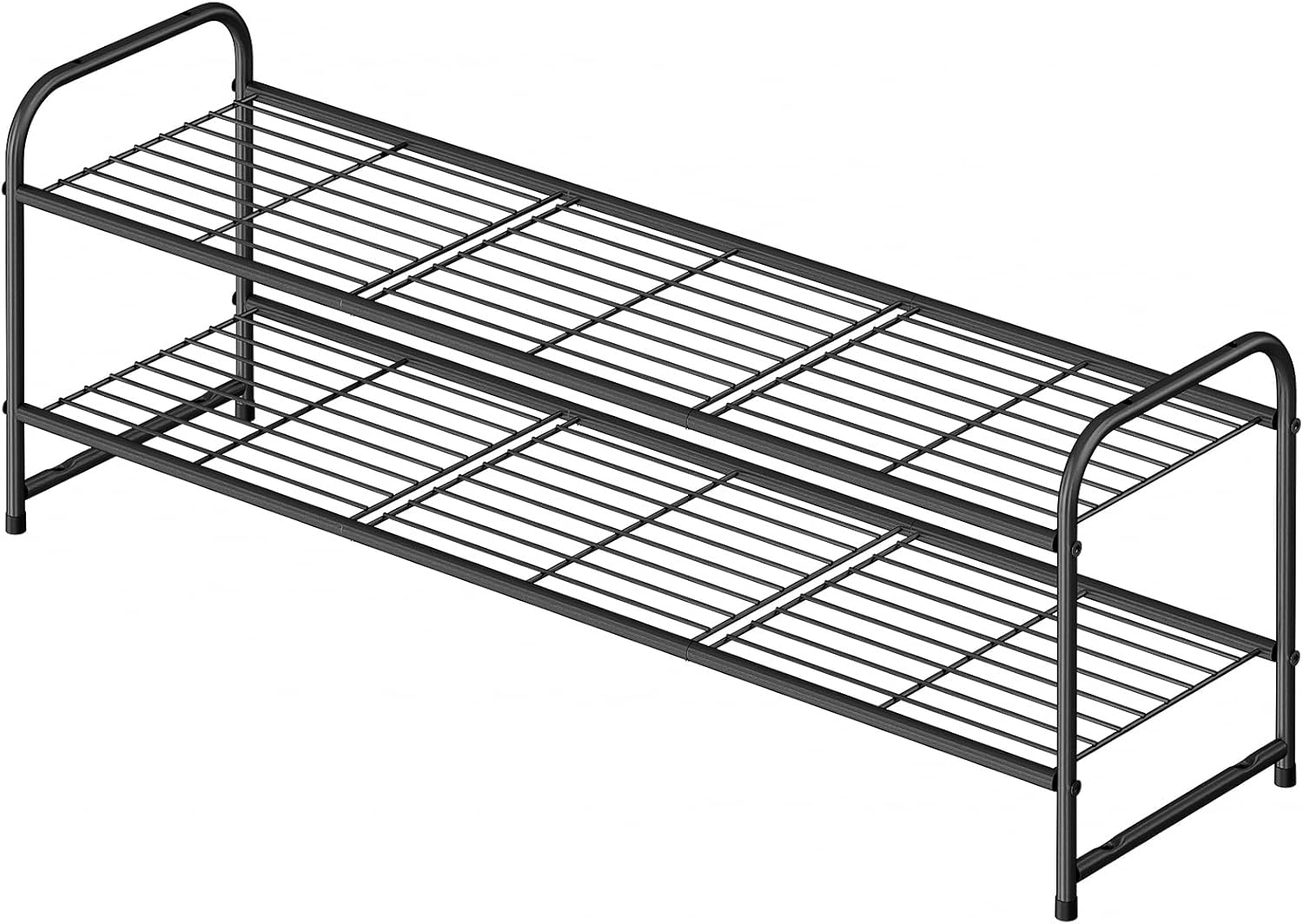 2 Tier Shoe Rack for Closet, 44 Inch Extra Long Shoe Storage Organizer for Shelves, Heavy Duty Metal, Easy Assembly, Black