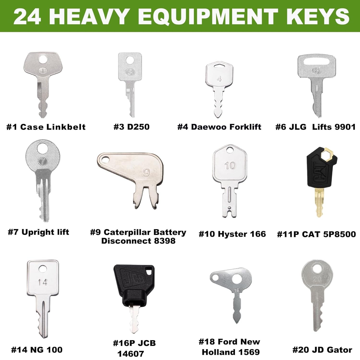 Efficiency : This set includes 24 different keys, covering nearly all common models encountered in daily use. It ensures you always have the right key for heavy equipment at your fingertips, eliminating the hassle of searching for individual keys.