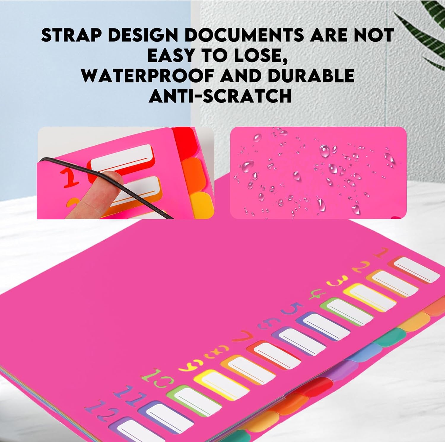 24 Pockets Expanding File Folder Organizer,Accordion File Organizer,A4 Letter Size,Rainbow Tab, for Home/Office/School Document Organizer (Rose Pink)
