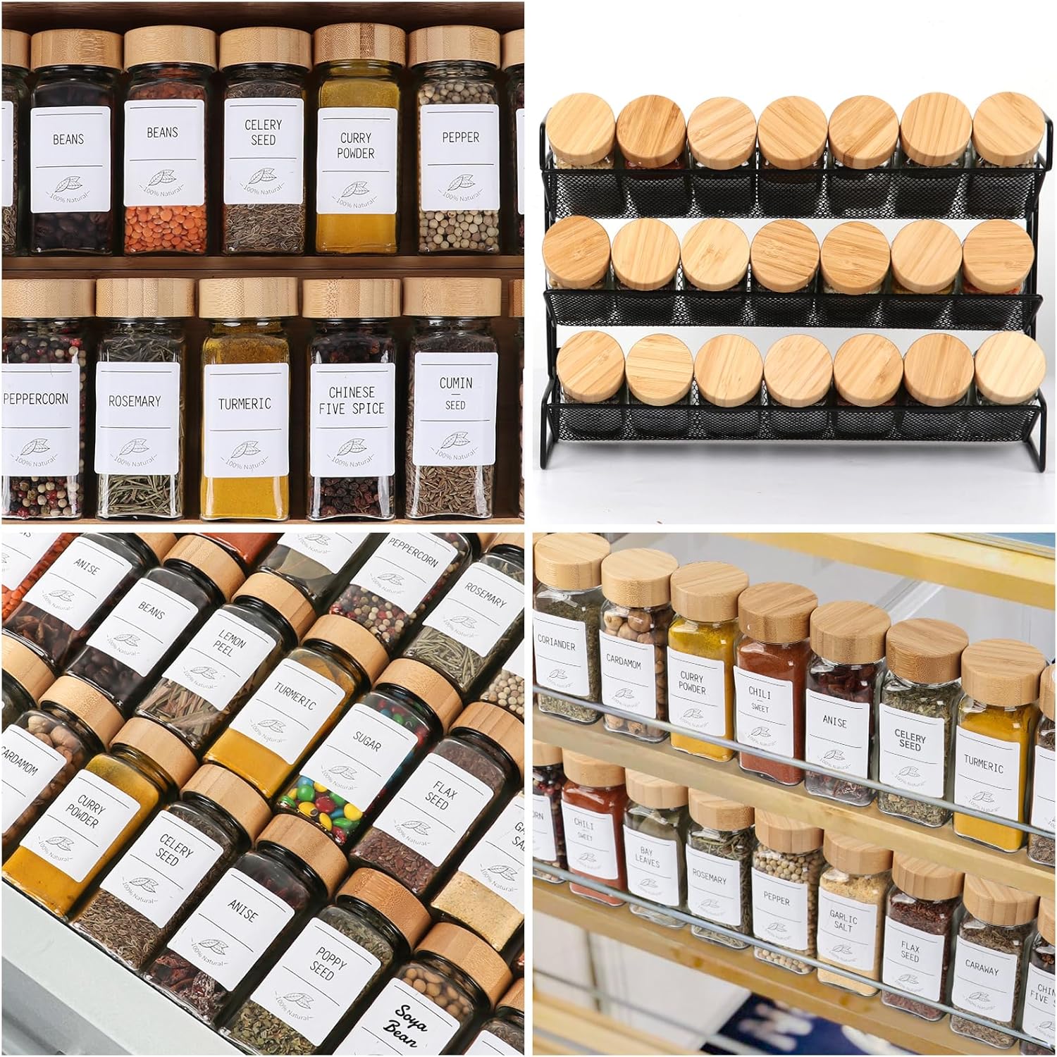 Includes pre-printed labels featuring commonly used spice types, as well as additional blank labels for personalized spice names.
