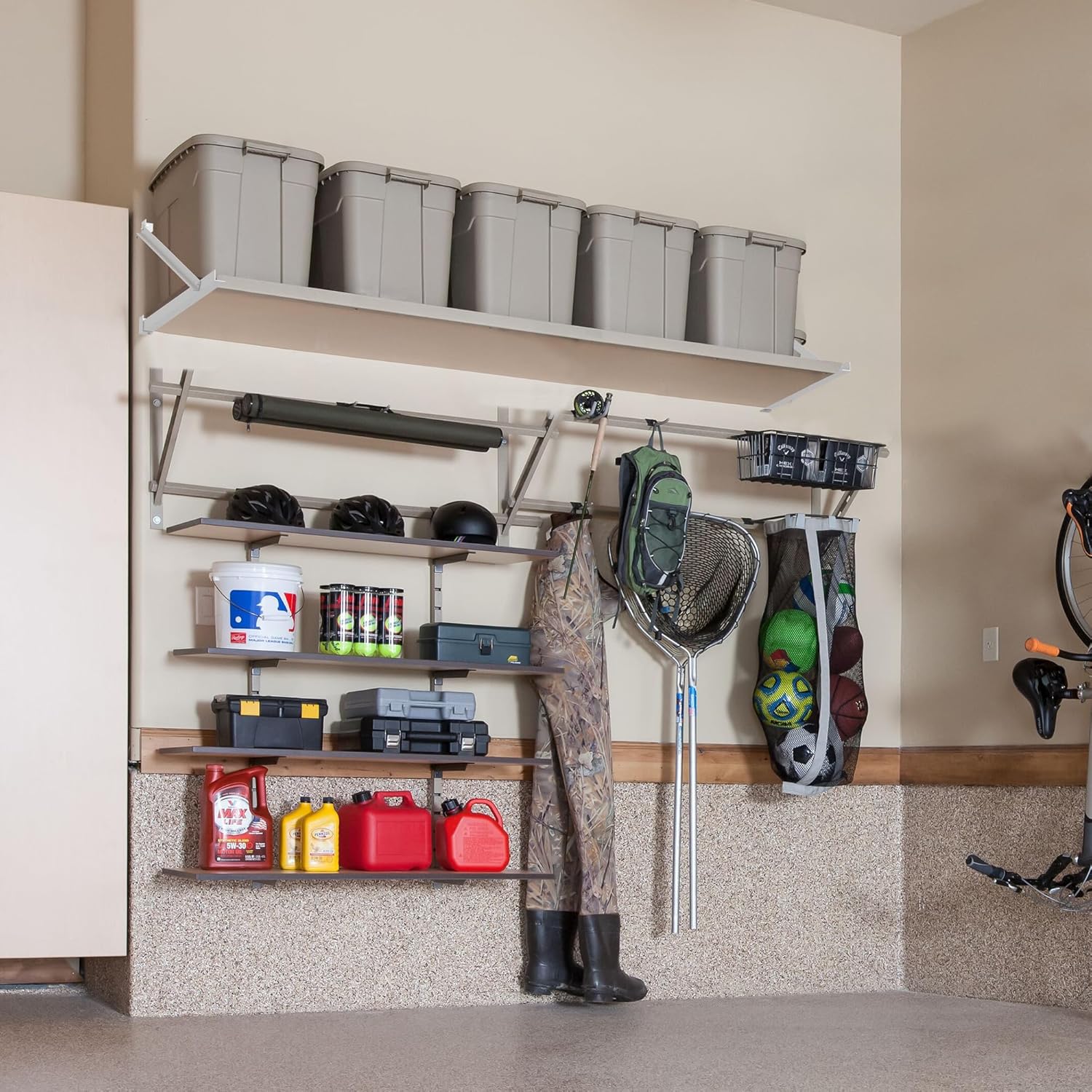Leading Design,Wall-Mounted: Unlike suspended ceiling systems, our garage wall shelving mounted will not compromise the structural integrity of your ceiling or void the warranty on your joists and trusses