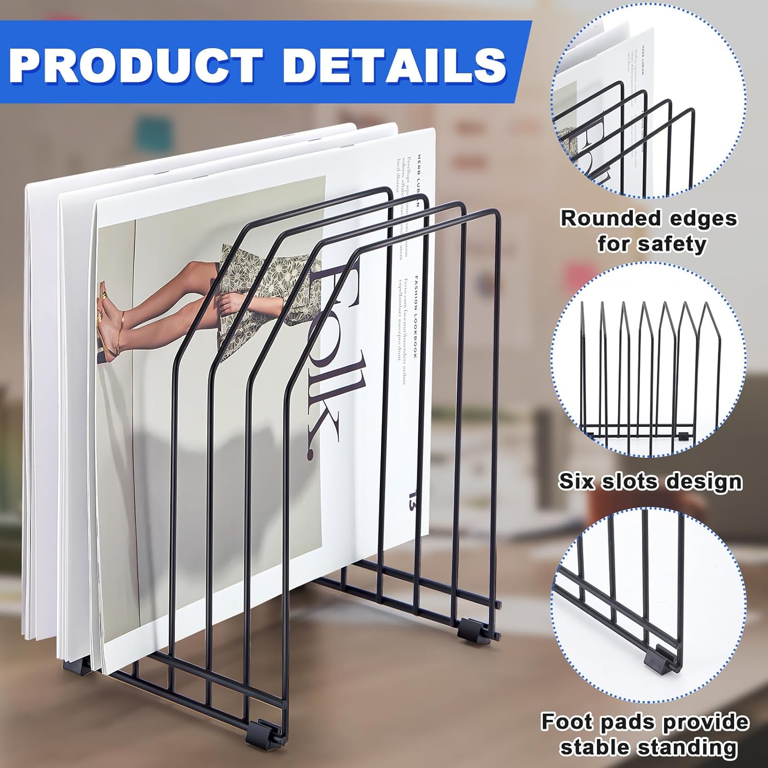 Our file organizer for desk comes with 6 slots, designed to help organize and prioritize files. So you can store bills, postcards, documents and even records, photo albums and more, which can easily accommodate a variety of items to keep your desk tidy and organized.
