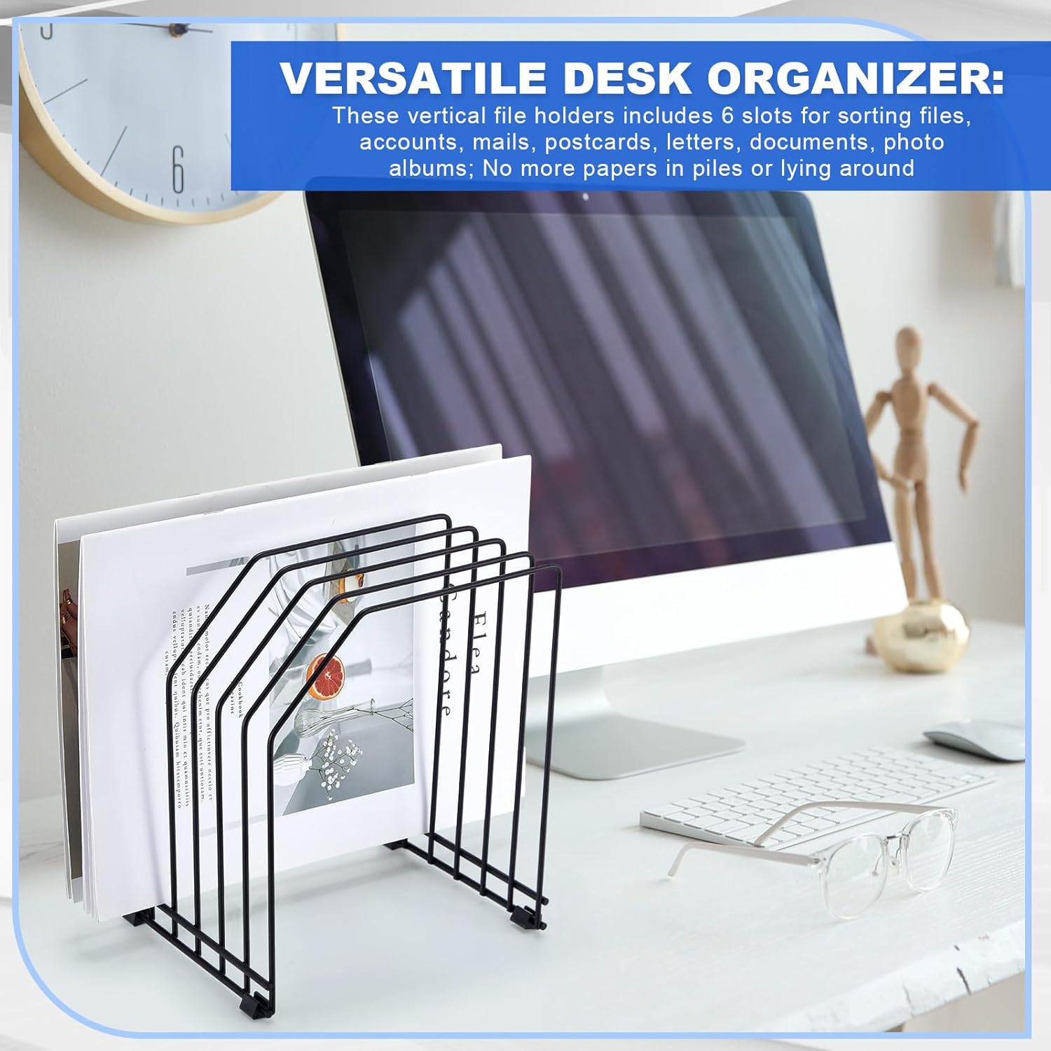 Versatile Desk Organizer: wire file organizer for desk include 6 slots for sorting files, accounts, mails, postcards, letters, documents, photo albums; No more papers in piles or lying around