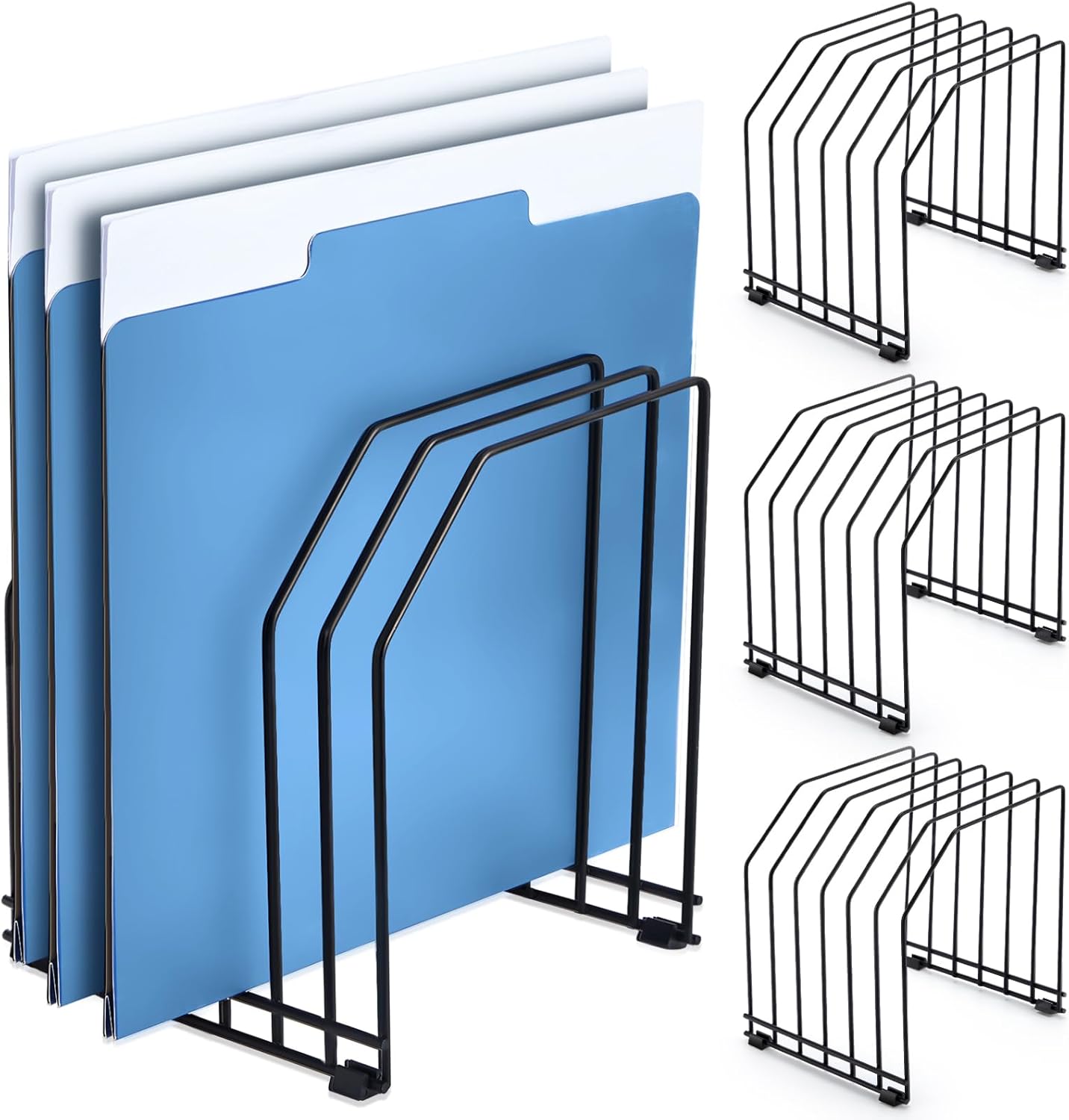 4 Pcs Wire File Organizer for Desk 6 Sections Metal Magazine File Holder Sorter for Binder Office Classroom School Paper Mail Book Storage, Black, 8.27 x 7.36 x 5.88 Inch