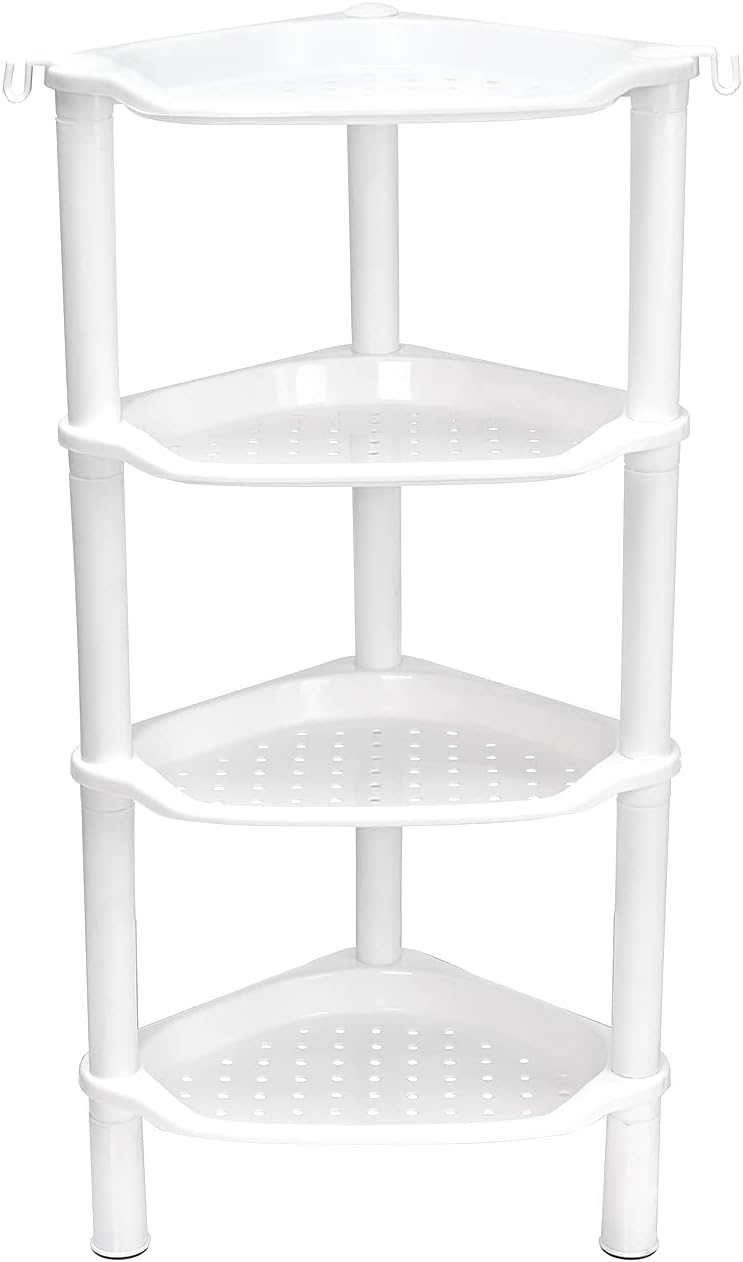 4 Tier Corner Shower Caddy, Rustproof, Plastic Shower Organizer for Bathroom, Bathtub, Shower pan, Bath Accessories Shower Caddies, 13.5 x 10 x 33.5 Inches, White (Round Slot White 4 Tier)