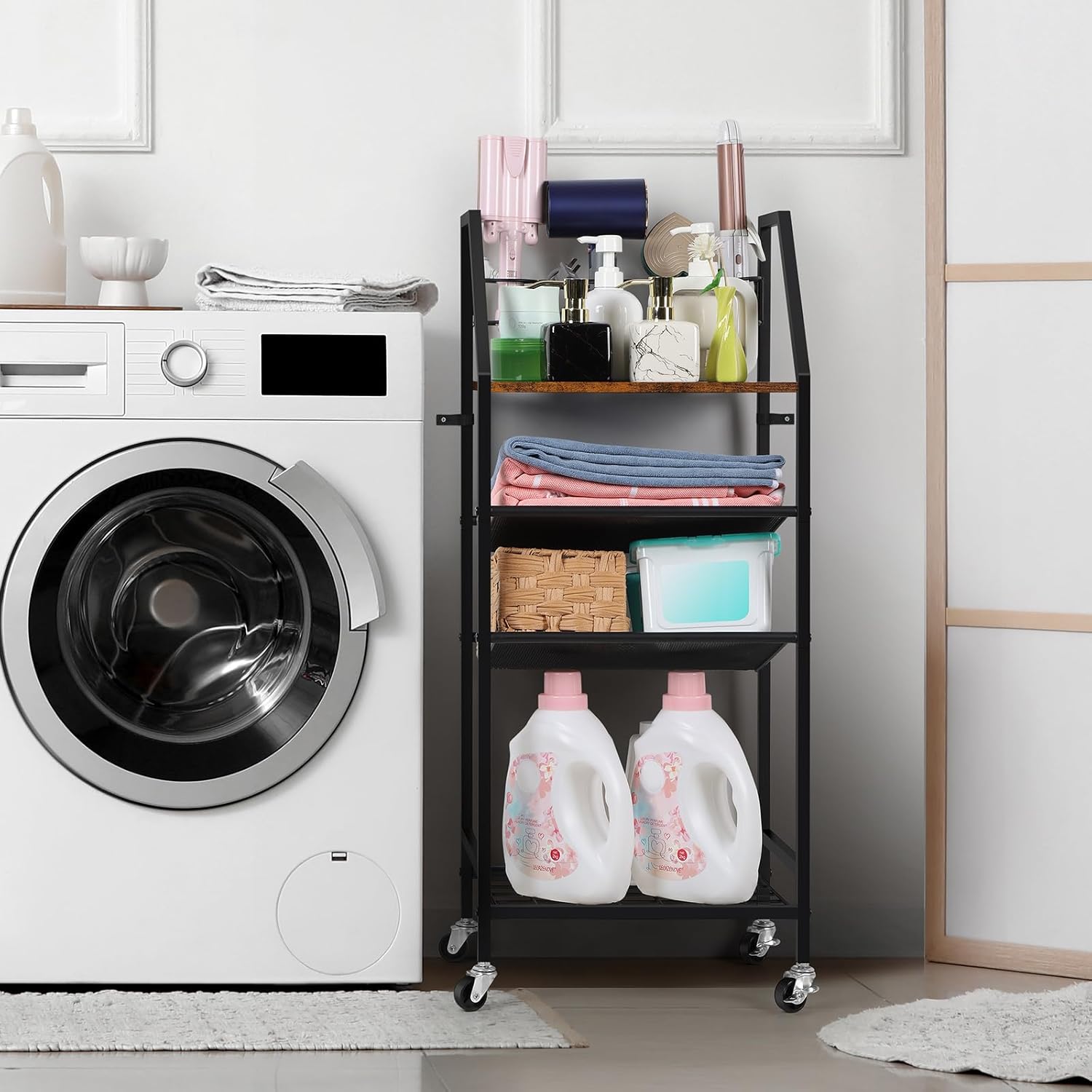 Our bathroom standing shelf has 4 layers, providing ample space for storage, perfect for storage toiletries, towels and hair tools and so on