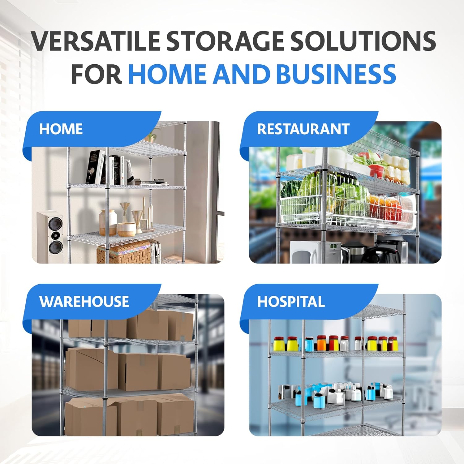 NSF Certified for Clean, Safe Storage: NSF certified for food and sanitation safety, this commercial-grade shelving unit is perfect for kitchens, restaurants, hospitals, and classrooms. Its chrome-plated wire rack design is easy to clean and resists rust, ideal for any hygienic storage environment.