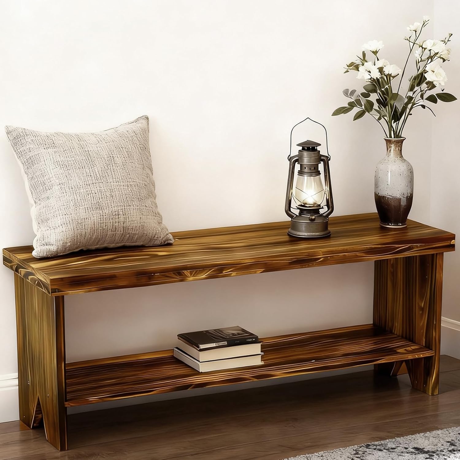 Note: Due to differences in natural wood grain and device monitors, the actual color of the entryway bench may differ slightly from the picture.