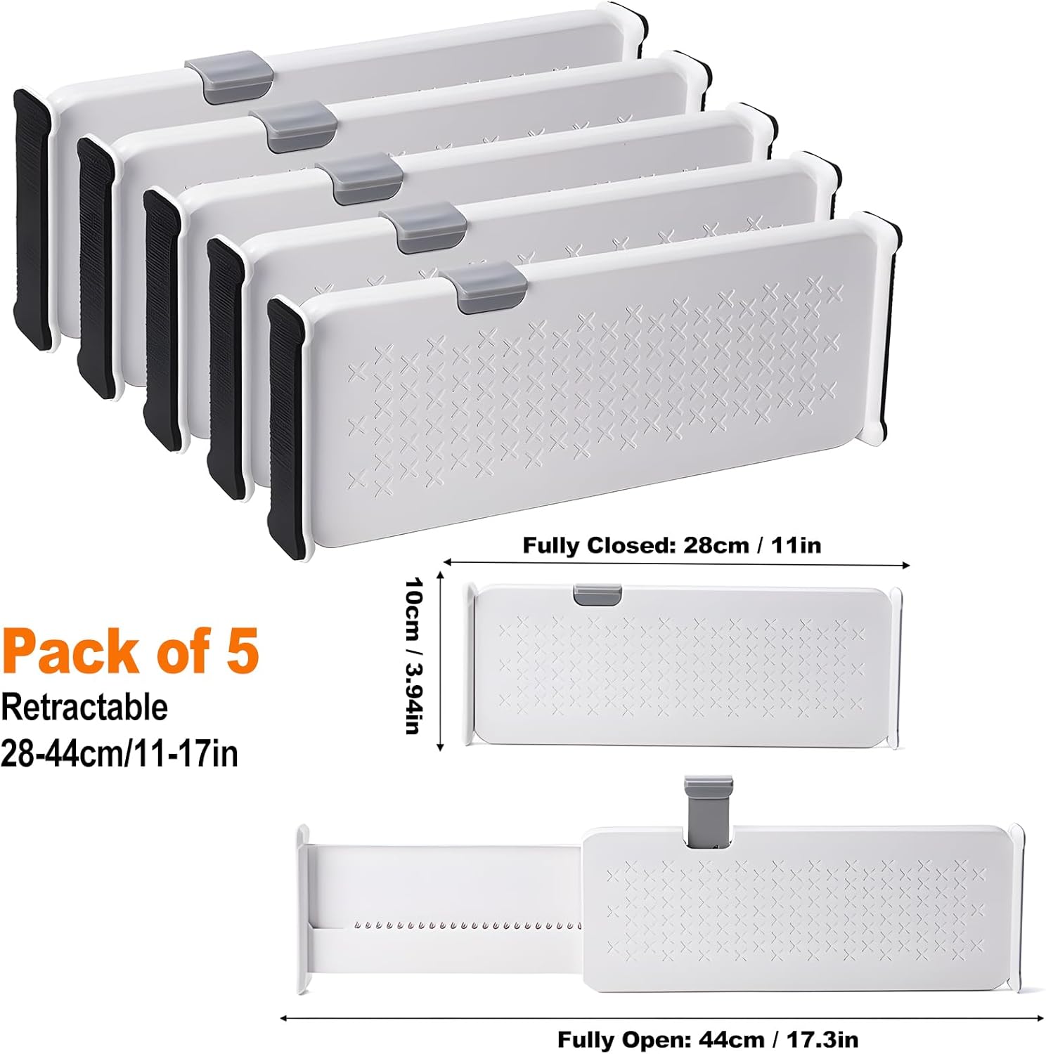 5 Pack Drawer Dividers Clothes Adjustable Dresser Organizers, Expandable Drawer Separators for Dresser, Bedroom, Kitchen and Office Storage, 4″ High/11-17 Long