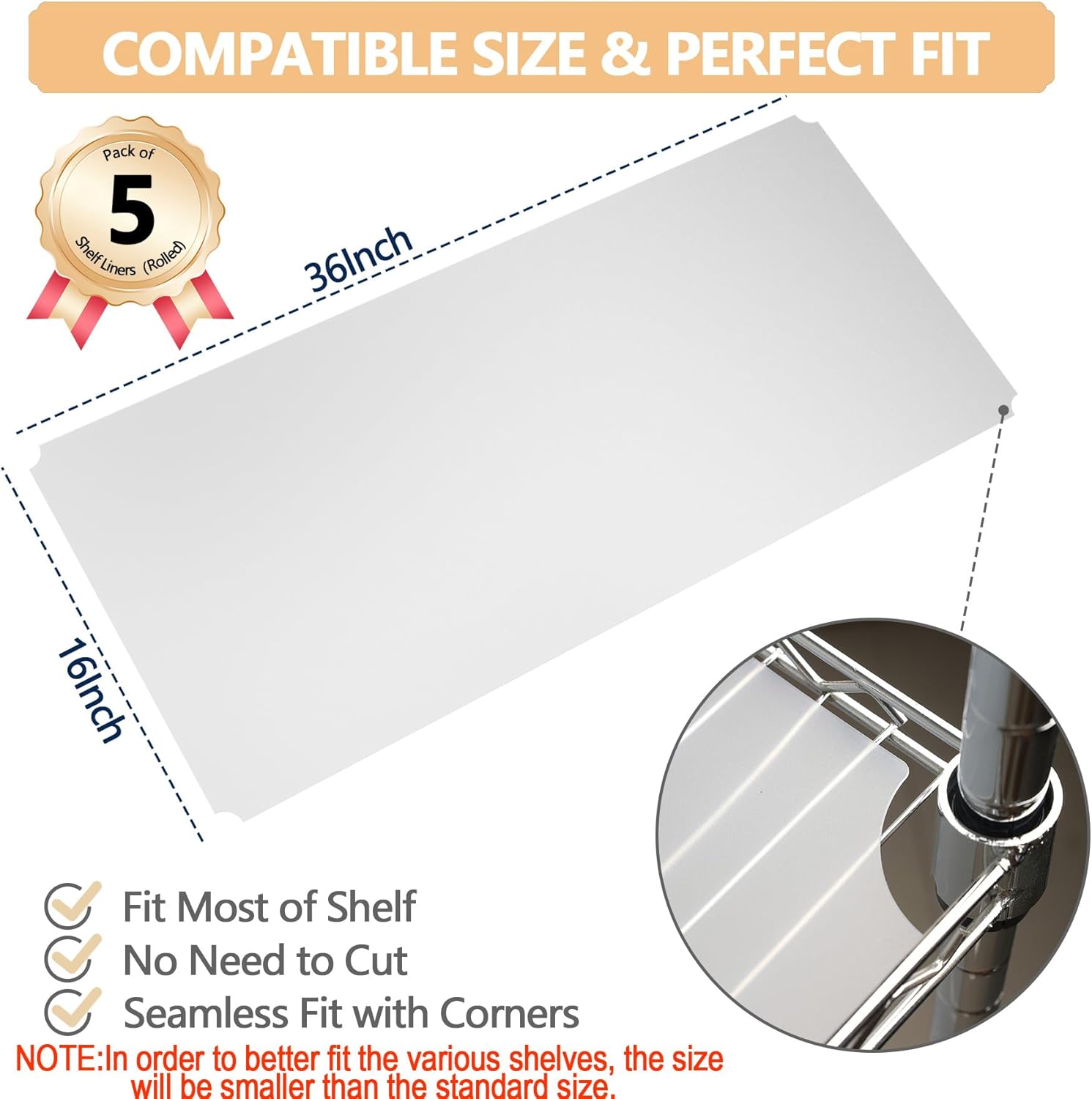 Maxtbee 16×36 inch Wire Shelf Liner Value Pack of 5 Heavy Duty Waterproof