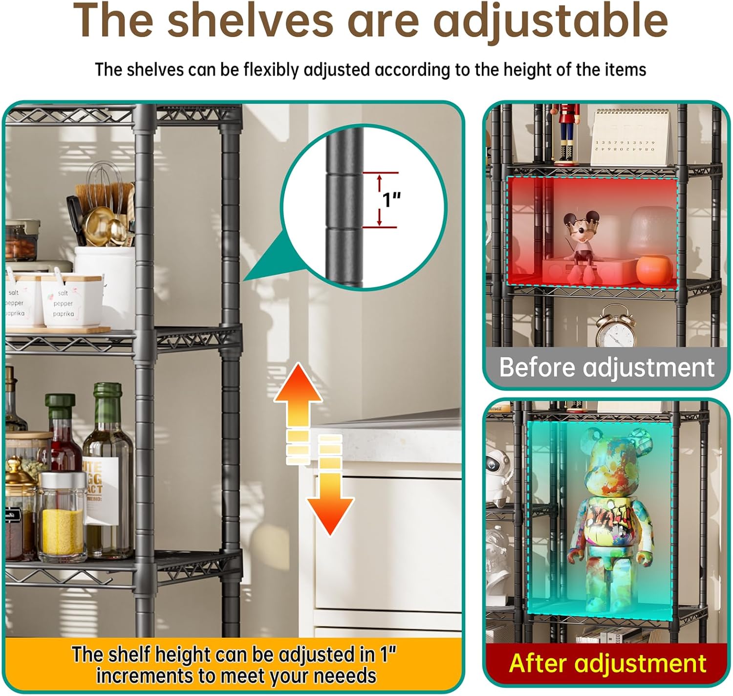 6 Tier Shelf Adjustable Storage Mesh Gaps Metal Utility Shelves Wire Shelving Unit Organizer Rack for Home Kitchen Office Bathroom Pantry Room10 D x 16″ W x 60″ H Black