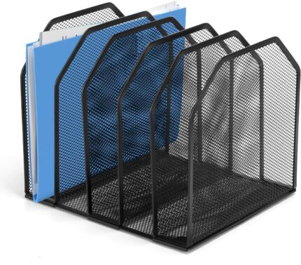 Compact and Efficient: Designed to save space, this vertical file holder utilizes minimal desk area while providing maximum storage capacity, making it an ideal solution for small or crowded workspaces.