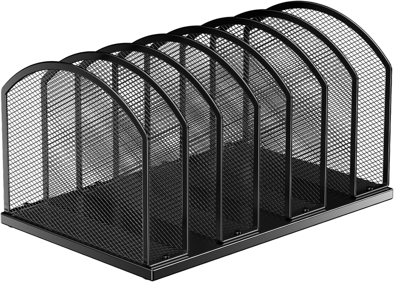 7-Section Metal Upright File Sorter Organizer,Office Small Letter Sorter Desktop File Organizer Metal Mesh Iron Sole, Black
