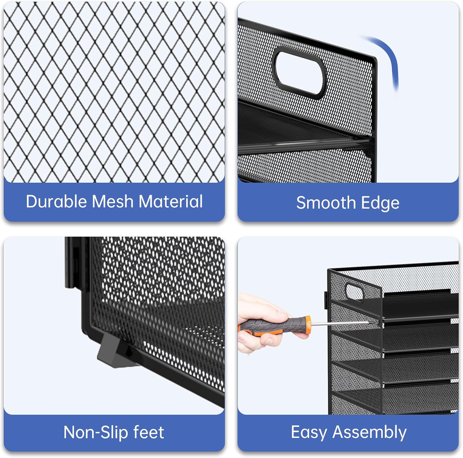 7-Tier Paper Organizer for Desk, Letter Tray with Handle Mesh Desk File Organizer, Workspace Organizers, Paper Sorter Organizer for Office Home School (Black)