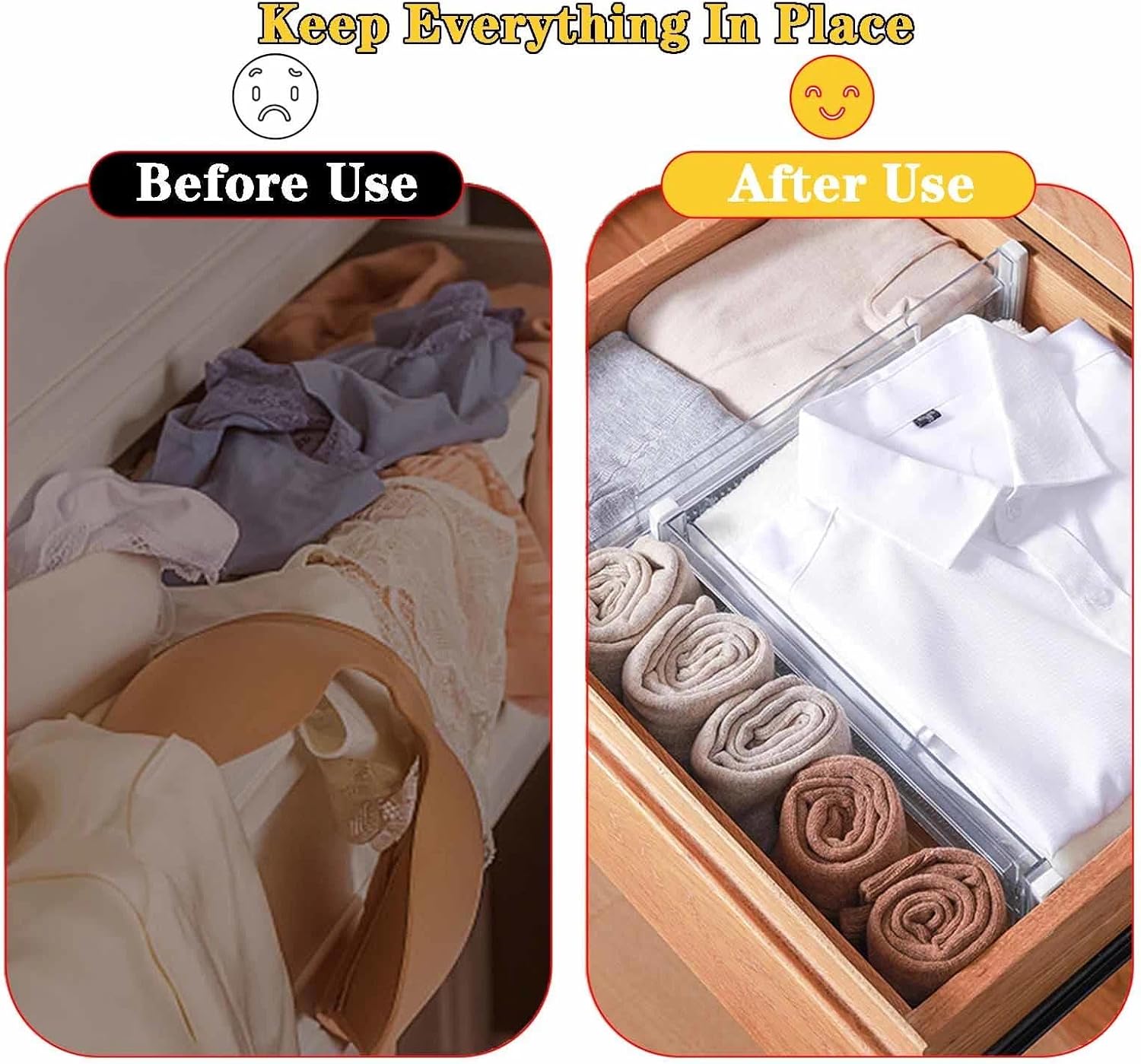【Multipurpose drawer dividers】 Create customized storage spaces anywhere with these dividers. Perfect for maintaining drawer organization and making items easy to find. Ideal for organizing clothes, baby clothing, underwear, socks, and more.
