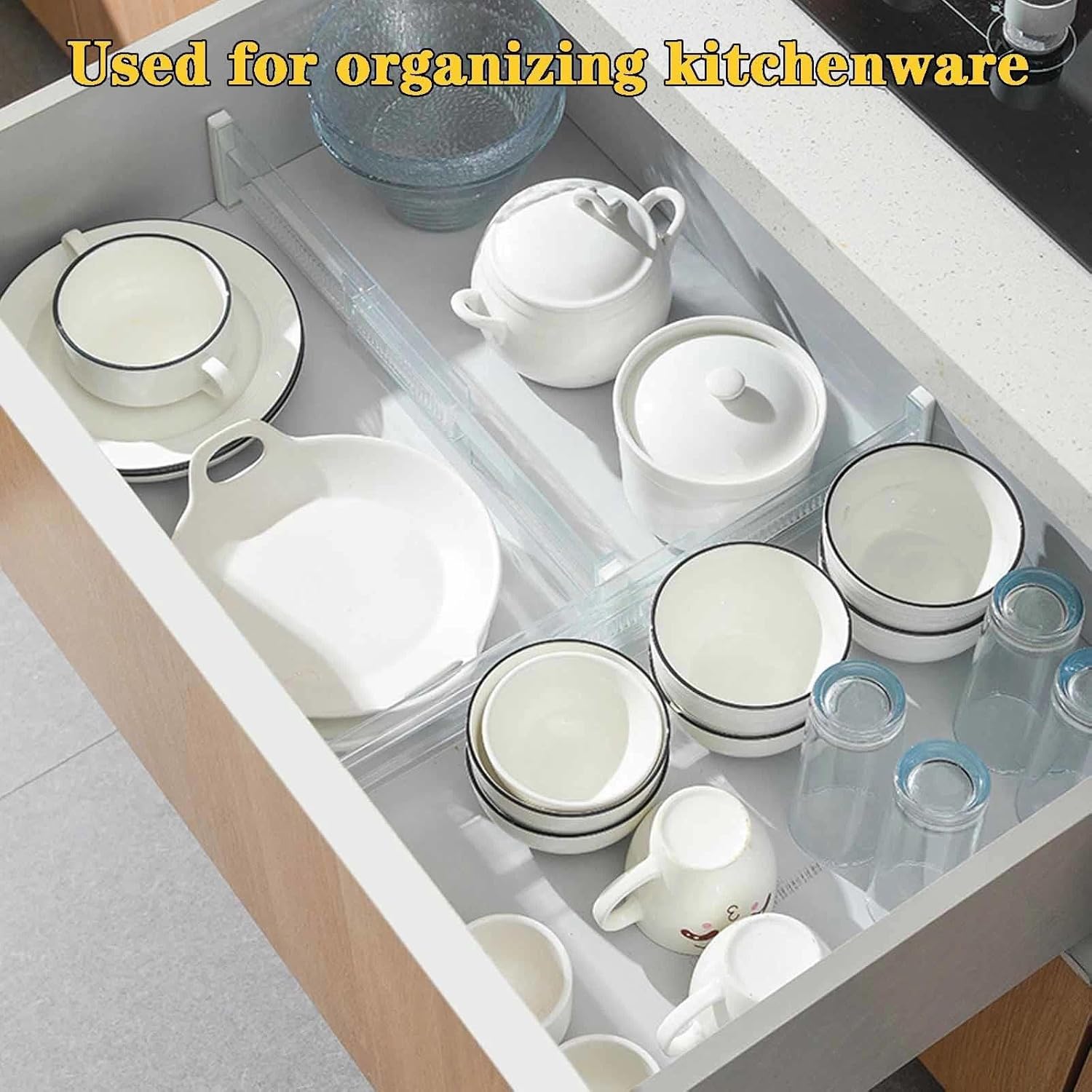 【Expandable & Adjustable】 Our drawer dividers feature a 3.15-inch height and an adjustable length ranging from 11.34 to 19.69 inches. They easily fit most drawers and cabinets, providing an ideal solution to keep items organized and drawers tidy.
